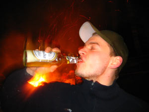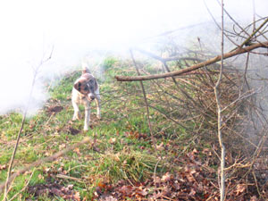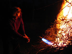 Wacho bewacht das Feuer - oder trauert er nur um die schönen Äste?
