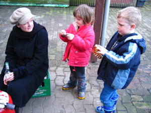 Lara und Tom verteilen Schoki. Die is auch viel zu ungesund für so junge Zähne :-D