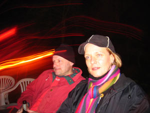 Nach 1 1/2 Stunden Fahrt, treffen wir passend zum 1. Feuerchen ein