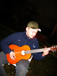 So gehört sich das: Gitarre am Lagerfeuer. Wenn jetzt nur jemand singen könnte ;-)