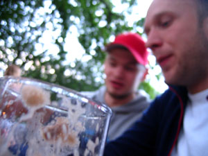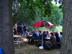 Lars, Gitarrist von Trover, umsorgt seine weit angereisten Kommilitoninnen...