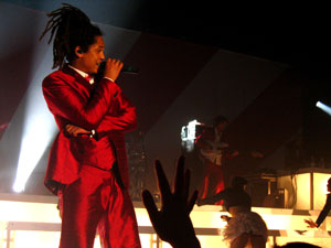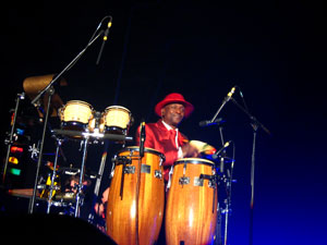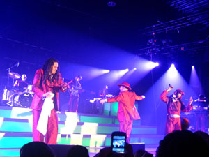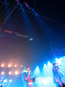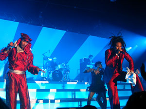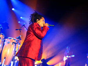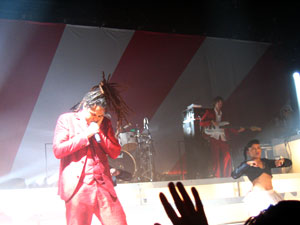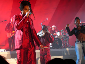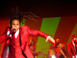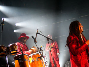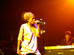 Dann geht's los mit dem Support Act »Nneka«. Im Hintergrund übrigens Drummer Jürgen. Jürgen passt auch namentlich sehr gut ins Erscheinungsbild der Band *g*