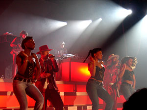 Bei einigen Songparts sprinten diese drei Mädels mit Vollgas auf die Bühne und schwingen mit genausoviel Vollgas ihr Teil *g*