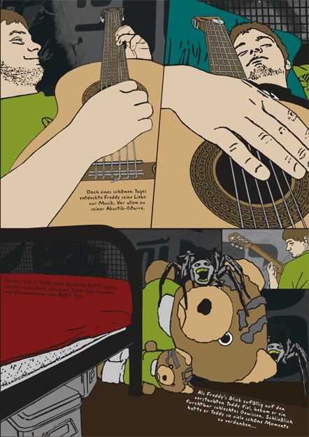 Prüfungs-Aufgabe war es, eine auf einem Gedicht basierende Geschichte in Comic-Form umzusetzen. Aber lest mehr im »Teddy & Freddy« making of! :) [PDF, ca. 6 MB] |