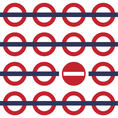 Ein Alternativ-Muster zur Kreis-Version bestehend aus Streifen, die einen Moiré-Effekt erzeugen. | |||||