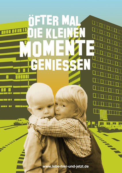 »Mehr Zeit für Gefühle, für Liebe, für Kinder« Unter diesem Motto galt es über zwei Semester hinweg eine Kampagne zu entwickeln, die wieder neue Werte in unserem »armen« reichen Land initiieren kann... Mehr Infos gibts unter www.lebe-hier-und-jetzt.de. |