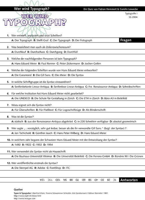 WS05/06 Typografie II: »Zeitzeichen« Prof. Dirk Fütterer |