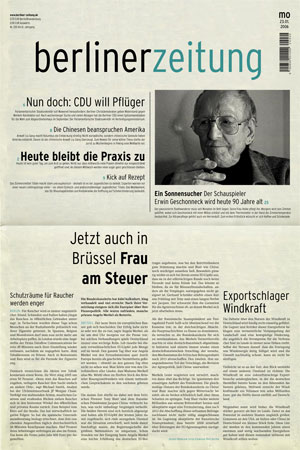 Redesign-Projekt der Berliner Zeitung in Kooperation mit unserem Typo II Kurs, bei dem es darum ging, die Berliner Zeitung inhaltlich und äußerlich so zu überarbeiten, dass auch die jüngere »Problem«- Zielgruppe angesprochen wird. Ich habe zusammen mit mit Alexander Ahlert, Jennifer Dreier und Sarah Schniedermann in einer Gruppe daran gearbeitet. Das PDF unserer Prüfungspräsentation gibt's hier. |