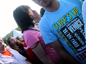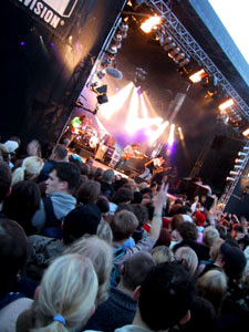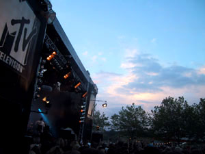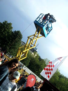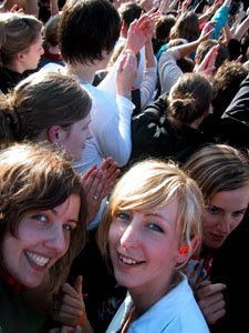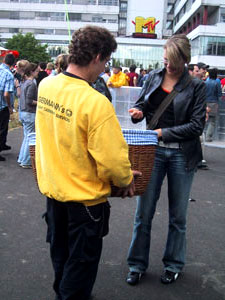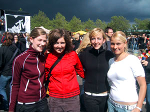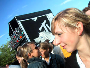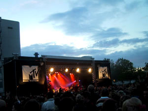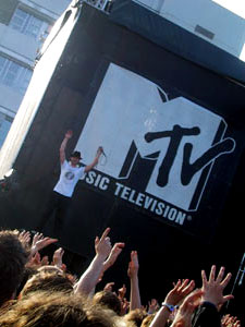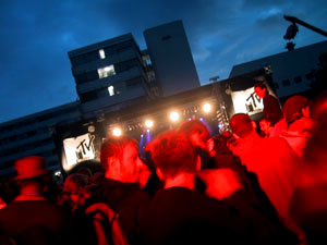 Der MTV-Turm hinter den Menschenmassen. Damit die MTV-Zuschauer auchn guten Überblick haben.
