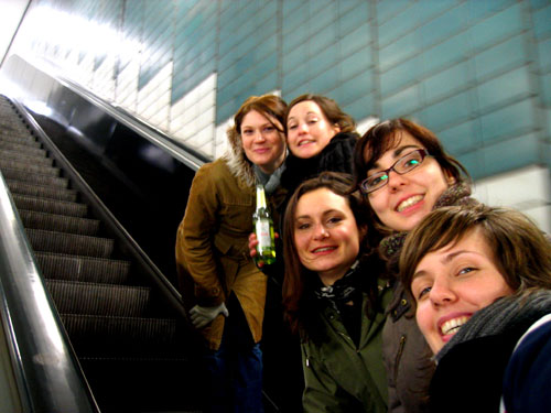 Wir suchen uns ne etwas entspanntere Location umme Ecke mit Sitzgelegenheiten und mehr als 50 Quadratzentimeter Platz pro Person :)